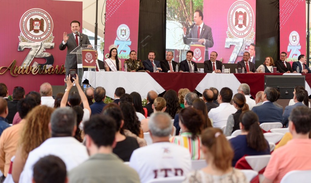 “Tenemos uno de los mejores institutos tecnológicos de todo el país, Durango es exportador de cerebros”, destacó el gobernador Esteban Villegas Villarreal, durante la ceremonia solemne del 75 aniversario del ITD, la gran institución encargada de preparar egresados para la llegada de industrias a la entidad.