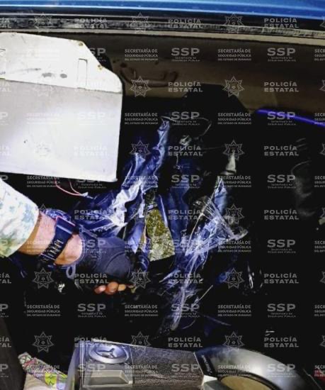 En recorrido de prevención y vigilancia elementos de la Policía Estatal en coordinación con elementos de la Secretaría de la Defensa Nacional, detectaron un vehículo en aparente abandono por la carretera Gómez Palacio-Jiménez encontrando en el interior del mismo un bulto con 25 kilogramos de marihuana.