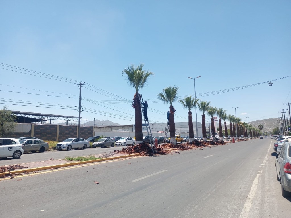 Dio a conocer que en días pasados se hicieron los trabajos de poda de 289 palmas en el bulevar Carlos Herrera, 352 en el González de la Vega y ahora 38 en el Paseo Independencia, destacando que esas piezas reciben un tratamiento de nutrientes para brindarles una larga vida.