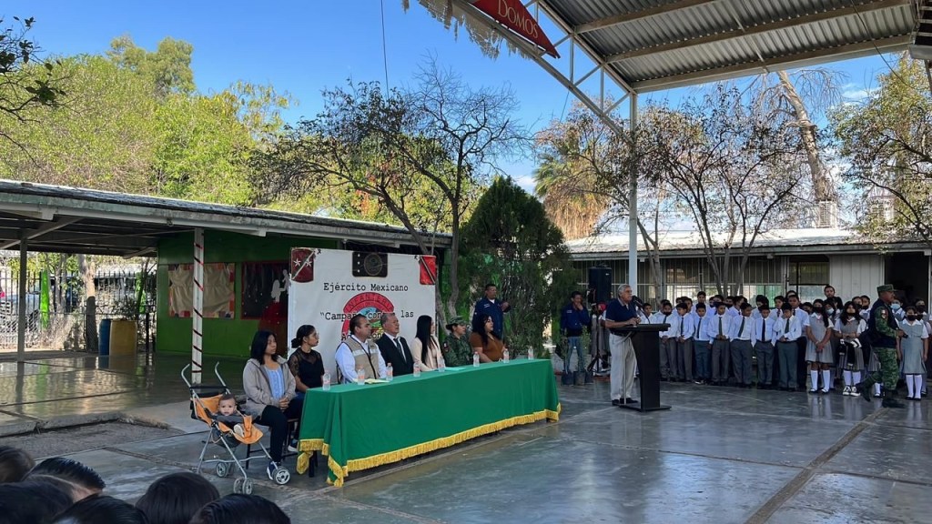 Carriedo García, señaló que en esta brigada es muy importante la colaboración del 72 Batallón de Infantería, quienes además de trabajar en la mejora de los espacios, encabezan honores a la bandera y llevan a cabo breves charlas para reforzar los valores cívicos entre los estudiantes.