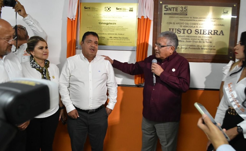 Contando con la presencia del dirigente nacional del SNTE, Prof. Alfonso Cepeda Salas, este lunes fueron reinauguradas las oficinas centrales de la Sección 35, con un emotivo evento que tuvo como anfitrión al secretario general de este gremio magisterial, Prof. Arturo Díaz González.