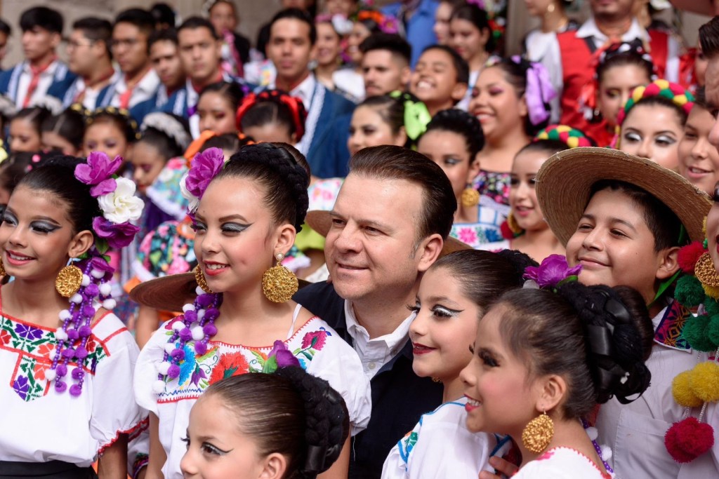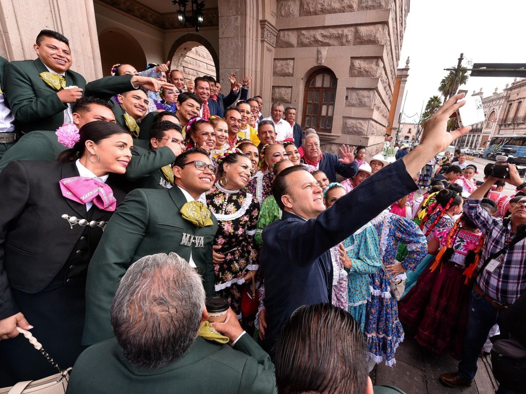 •Convive Gobernador con mariachis y grupos de danza durante la monumental fotografía en el teatro Ricardo Castro.