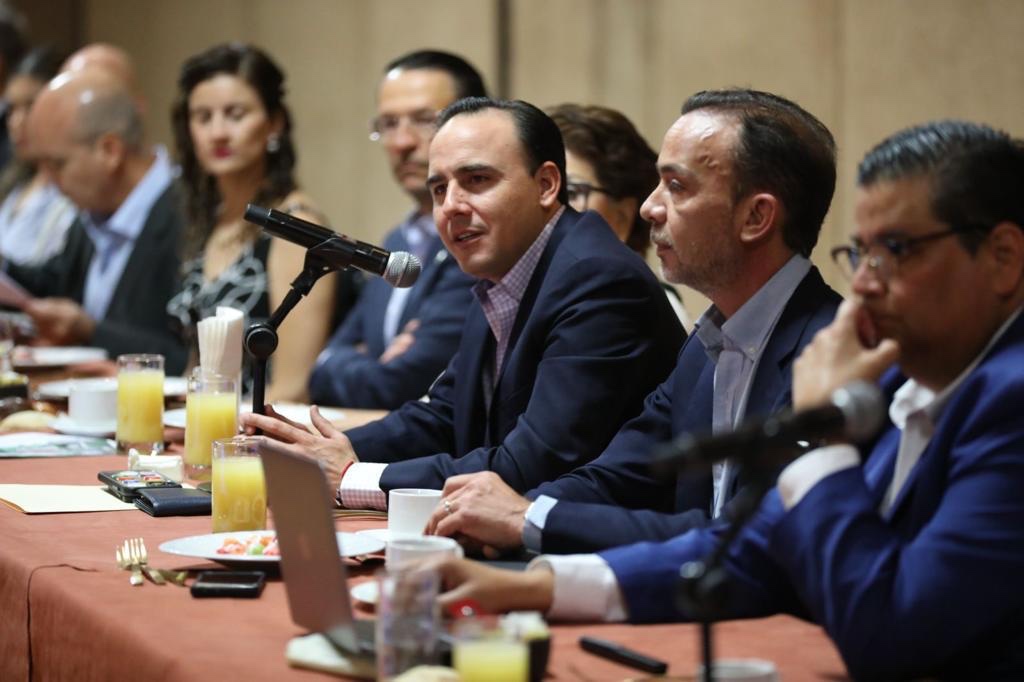 El gobernador electo, Manolo Jiménez Salinas, dio a conocer los avances de la mesa de trabajo del eje Coahuila Blindado, que en esta etapa de transición se están diseñando las estrategias para mantener al estado seguro y en orden y a partir del 1 de diciembre fortalecer el modelo de seguridad.