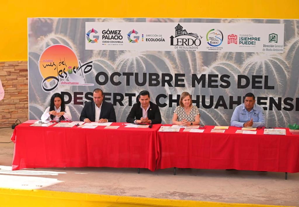 Esta mañana, en las instalaciones del Parque La Esperanza, fueron anunciadas las actividades que se llevarán a cabo en el marco del evento “Octubre, Mes del Desierto Chihuahuense” que en esta ocasión le corresponde al municipio de Gómez Palacio, fungir como sede bajo el lema “Unidos por un Desierto Chihuahuense, sin contaminación por plástico”.