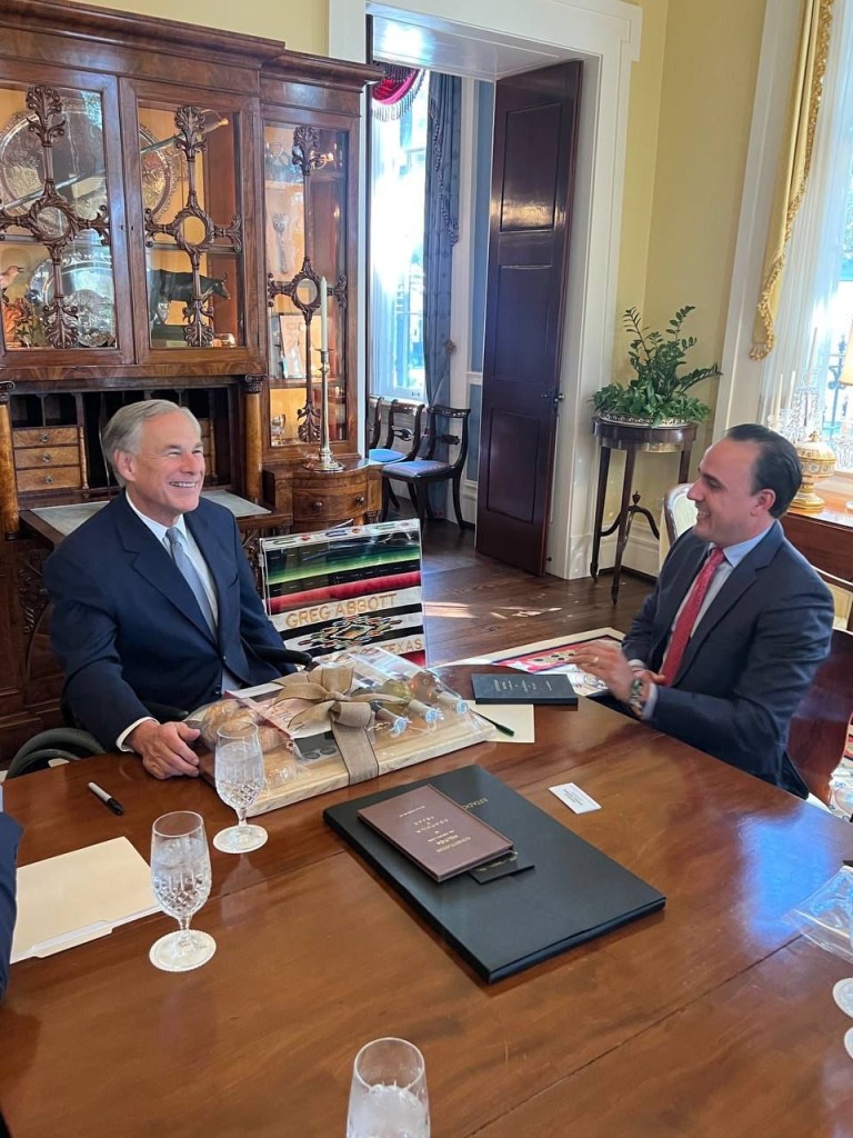 El gobernador electo dio a conocer que la reunión con Abbott se enfocó en tres principales áreas; la promoción del enlace económico, empresarial y de infraestructura entre ambas entidades para el crecimiento y agilización del comercio.