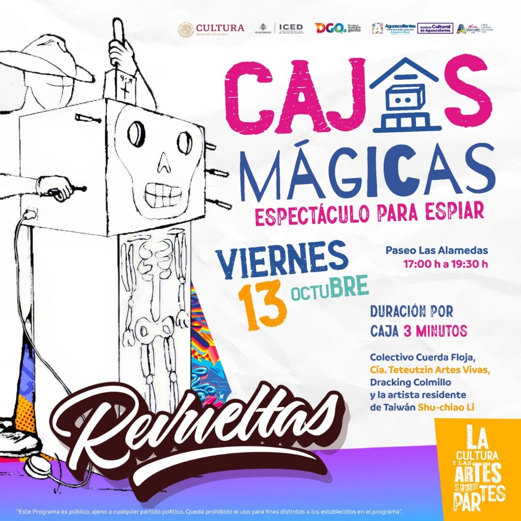 “Son eventos padrísimos y gratuitos”, destacó junto al titular del Instituto de Cultura del Estado (ICED), Francisco Pérez Meza, al detallar la cartelera para este primer día, donde resalta el espectáculo de “Cajas Mágicas” en Paseo Las Alamedas a las 17 horas; la obra de «Don Juan Tenorio» en el Teatro Victoria a las 20 horas y la presentación de “Aguascalientes Un Viaje al Corazón” en el Teatro Ricardo Castro a las 8 de la noche.
