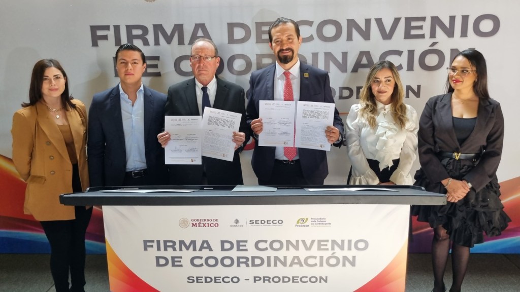 Mientras que en su discurso, la delegada de la Prodecon, Karla Alejandra Rodríguez Lozano, destacó el compromiso de trabajar en equipo con el gobierno del Estado a través de la Sedeco, con ello, Durango se convertirá en un estado pionero en responsabilidad y en brindar certeza jurídica en temas tributarios.