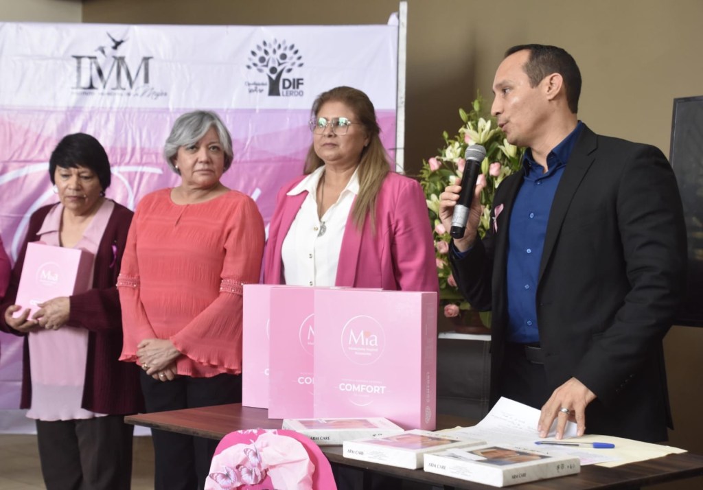 En nombre del Presidente Municipal Homero Martinez Cabrera, el secretario del Ayuntamiento Jesus Eduardo Lara Urby agradeció la donación de estos artículos por parte de la fundación ‘Mujeres Salvando Mujeres’ (18 prótesis mamarias, 3 mangas de compresión y 3 pelucas) y resaltó que Lerdo trabaja en informar, prevenir y detectar el cáncer de mama para salvar vidas, no solo en el mes de octubre sino durante todo el año, en coordinación con el Gobierno del Estado.