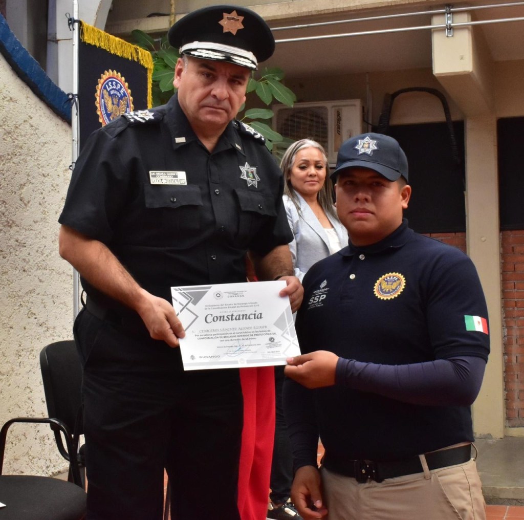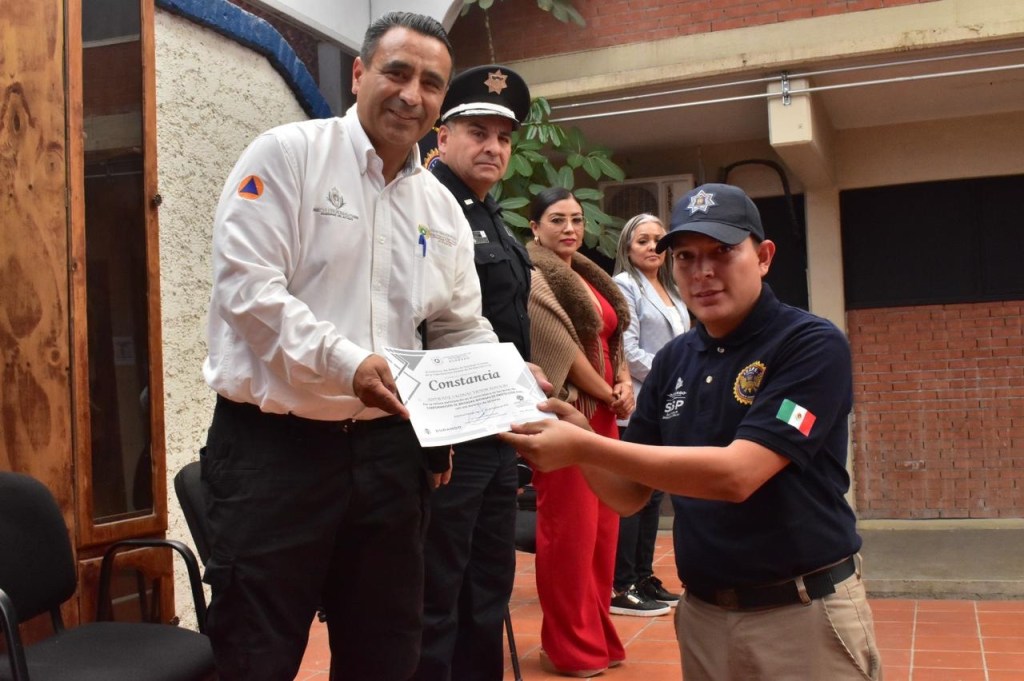 Con la representación del Lic. Arturo Galindo, Coordinador Estatal de Protección Civil, acudió el Ing. Jorge Paniagua Reyes, Director de Gestión Integral y Riesgos, quien explicó que por tratarse de futuros policías, quienes a su vez son los primeros respondientes en muchas situaciones de accidentes o de alto riesgo, se les impartió un curso más allá del básico, siendo la Conformación de Brigadas Internas de Protección Civil con la formación de Sistema Comando de Incidentes, con lo cual cuentan con los conocimientos que les permitan, inclusive salvar la vida a una persona en casos de siniestros.