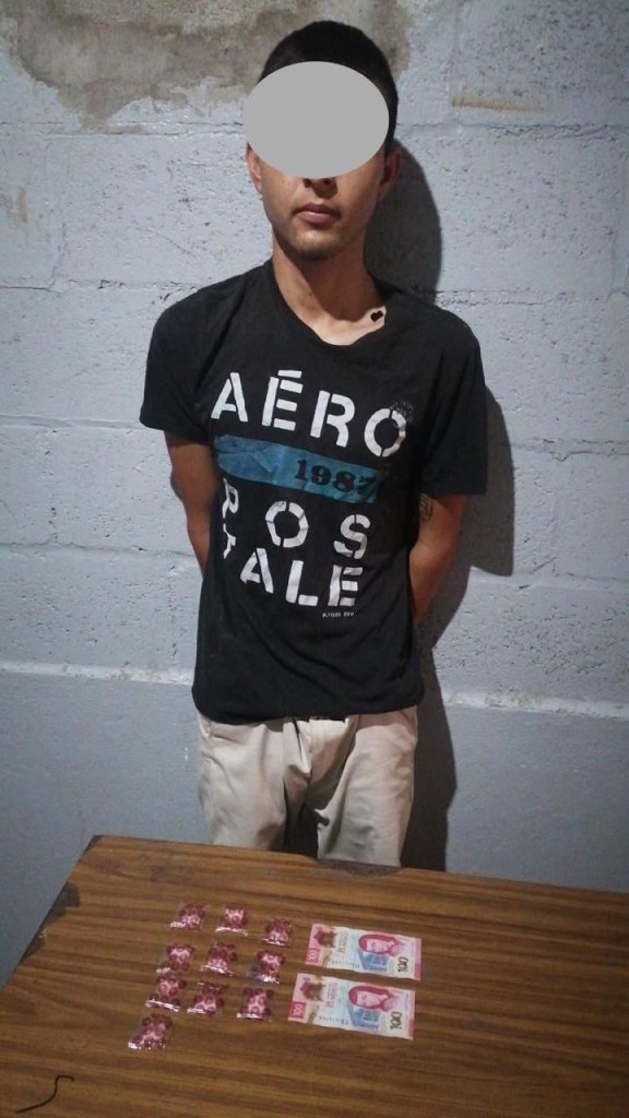 Se trata de Viviana “N” de 25 años de edad con domicilio en el Ejido San Ignacio de la ciudad antes mencionada quien al revisarla se le encontraron 7 bolsas de celofán con vivos rojos conteniendo polvo blanco con las características del cristal y 100 pesos en efectivo; Brayan “N” de 22 años de edad con domicilio en la colonia Valle de Chapala de la misma ciudad se le localizaron 10 dosis de la misma droga y 200 pesos en efectivo; y José “N” de 35 años de edad con domicilio en el Ejido San Ignacio de la misma urbe a quien se le hallaron 9 raciones del mismo narcótico y 150 pesos en efectivo.